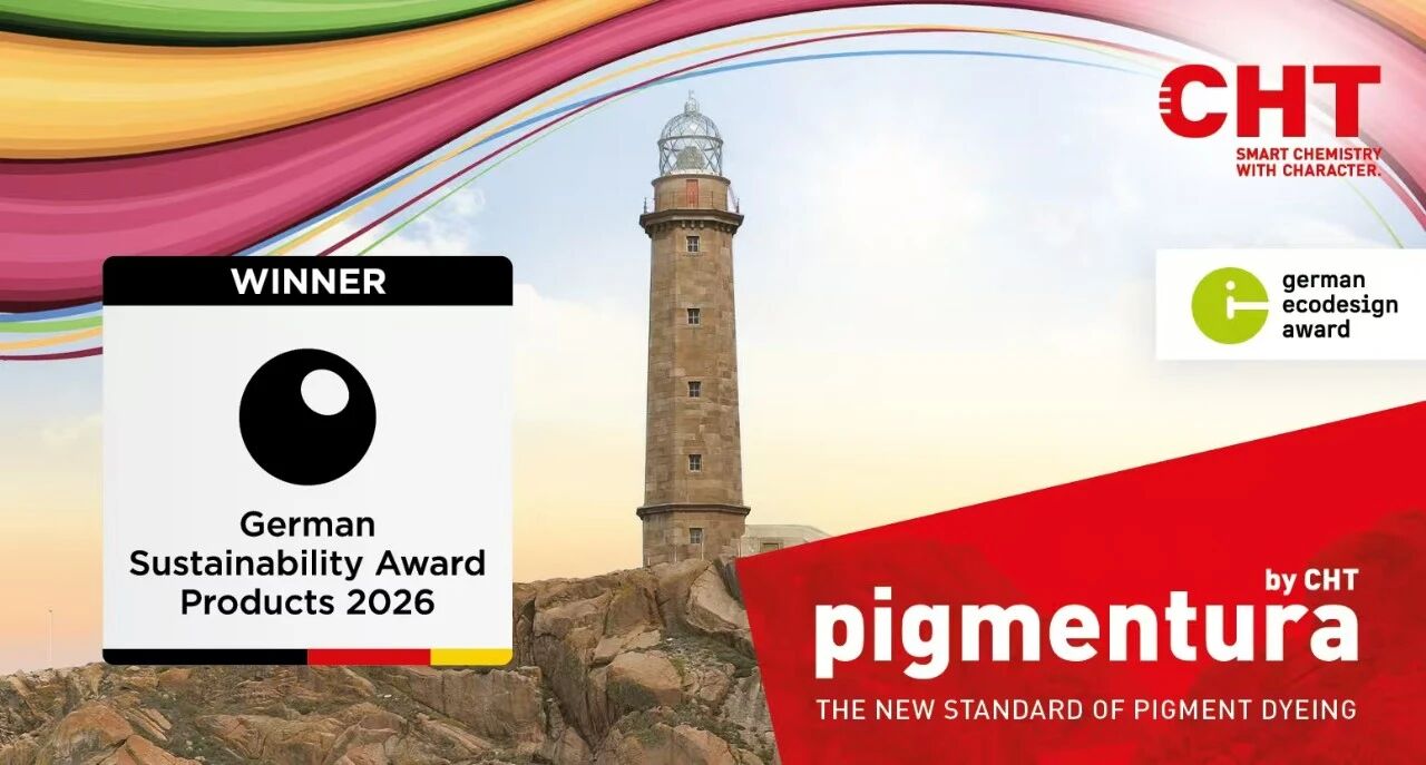 • 突破性连续染色工艺PIGMENTURA BY CHT:该工艺适用于棉及其混纺织物。CHT集团服装与家纺全球市场总监Birgit Holz表示:“PIGMENTURA 工艺大幅提升资源利用效率,节水率超90%,同时显著降低能耗与碳排放,生产周期相比传统轧蒸、冷堆染色工艺大幅缩短。该创新染色工艺于2025 年12 月荣获德国可持续发展奖产品类别奖 – 这是欧洲最具权威性与影响力的可持续发展类奖项。”