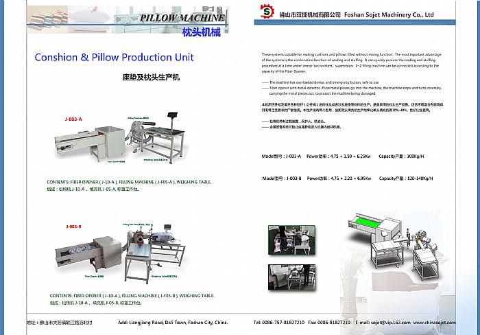 该设备由松棉机与双头充棉机组合而成,集开松填充于一体,梳棉填充一次完成。填充过程无需等待,双头交替工作,效率机高。