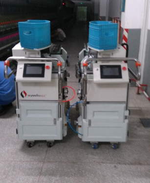 元裕智能落纱机针对当前行业形式主要解决了三大问题,形成了自己的自身优势:一是方便老机改造,无须改变锭子和筒管;二是服务于多台落纱,最大限度利用了落纱机;三是完全取代了人工拔、插落纱环节,减轻了落纱工的劳动强度。 元裕机械有限公司针对当前纺纱厂工人短缺,招工难以及繁琐的落纱工作历经多年的研发、反复试验现全面推出元裕Y-13智能落纱机。实现了拔管、插管、返回全程自动化。该机具有操作简便、使用灵活、成本低等特点,两台落纱机为一组,可左右同时落纱,能服务多台各种形式的细纱机落纱工作,完全可以取代传统的人工拔、插纱管工作,实现了整个落纱过程自动化,为企业减少用工量,大幅度降低落纱工人的劳动强度,提高生产产量,优化了企业车间工作环境。 元裕智能落纱机特点: 1. 多轴连杆机械手抓放,顶部抓取,垂直拔插一次完成。 2. 对锭子无损伤。 3. 单面仅需 1 人辅助操作,大大减少企业用工,劳动强度大幅降低。 4. 适应光锭杆和铝锭杆落纱。 5. 适应从低支到高支纱的普通纺,紧密纺,氢纶包芯和赛络纺等落纱。 6. 适应任何长短机型改造使用。 7. 光锭杆尾纱无需专门清理,减少维护工作量。 8. 故障报错主动显示,实现“自动化”。