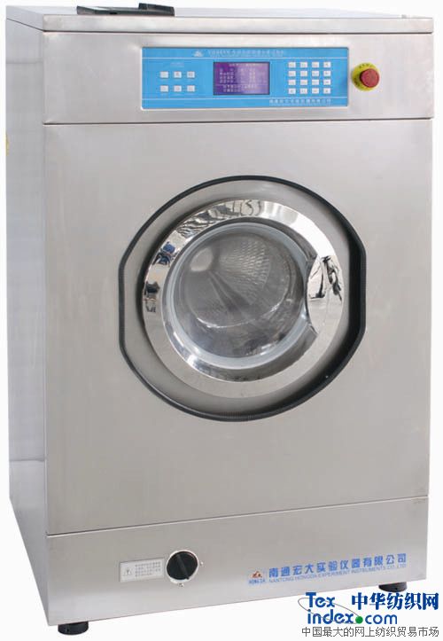 用于对各类纺织品进行洗涤后缩水率试验及羊毛纺织品经机洗后的松弛、毡化、缩水。 仪器特点 1、含预置1A~12A标准程序,另外支持个性编程,提供自定义编程的存储;并具有手动调试功能,调试更方便。 2、 采用变频调速控制技术,转速数字设定。 3、 整机为316不锈钢材料制作而成.,美观耐腐,使用寿命长。 4、 大屏幕液晶中文菜单显示 适用标准:GB/T8629;FZ/T70009;ISO5077,6330; M&S P1、P1A、P3A、P12、P91、P99、P99A、P134;BS EN 25077/26330;IEC456。 主要技术指标: l 型式:前门加料、水平滚筒 l 最大洗涤容量:5kg l 内滚筒 直径:51.5±0.5cm; 深度:33.5±0.5cm l 外滚筒 内径:57cm l 滚筒转速:(标准)洗涤转速52 r/min,脱水转速530 r/min; l 电机采用变频控制,洗涤转速20-99 r/min,脱水转速200-600r/min,无级调速,数字设定 l 水位控制:压力传感器检测,(10cm,13cm)数字设定 l 温度控制:室温~99.9℃,数字设定 l 单循环时间范围:0-99min l 循环次数:1-100次(程序可自动循环) l 加热功率:5400W l 电源电压:AC220V或 AC380V±10%,功率:6500W l 外形尺寸:810×700×1280mm(L×W×H)