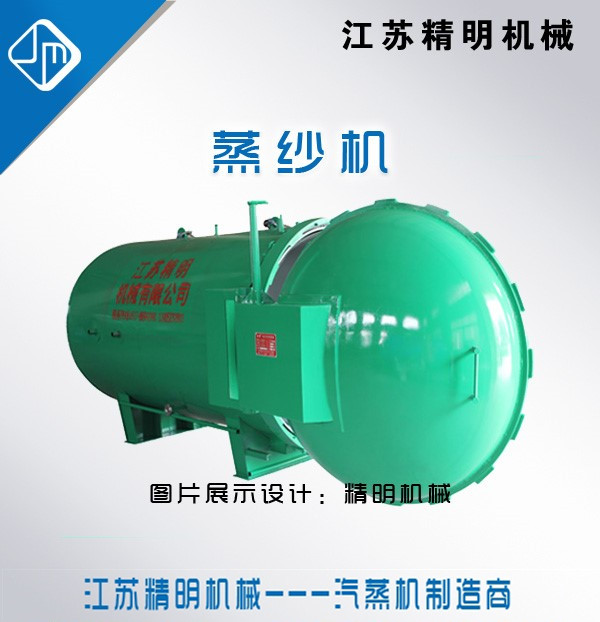 江苏精明机械有限公司生产的花色丝蒸纱机.它适用于纱线、涤纶线。化纤线。海绵擦布、窗帘定型。氨纶包覆纱线。棉纱。人造丝。涤论。电脑绣花线。缝纫线。针织线。曲珠线。花边线。拉链线等纱线的真空定形。其主要用途是将具备织造条件的连续丝线在合并,加捻后进行定型,即在一定压力,温度下稳定捻度,获得均衡的不扭缩的丝线。