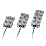 将传感I/O接插件进行集中接线,使以省 工时、耐环境性为目标的控制盘外用接 插件中继盒更短小·轻量化、系列化 ■清除IP67的小型和牢固型集中接线中继盒。 ■对应传感器I/O接插件方式(M12)的光电传感器、接近开 关、限位开关。 另外,还可以提高额定电流、追加接地端子,还可对应真 空管、螺线管等。 ■带电源显示LED、动作显示LED。 ■与插孔数无关,所有安装尺寸都一样,所以加设设备时的 安装也很简单。 额定值/性能