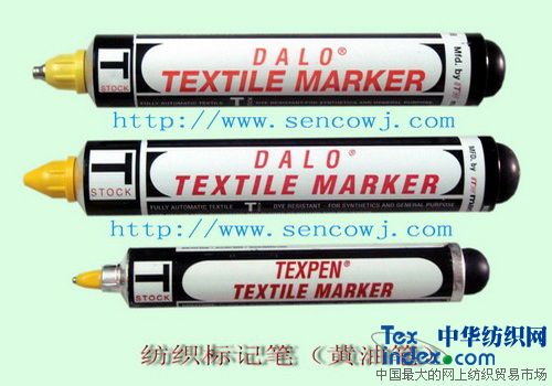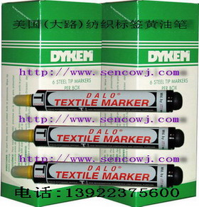 ◆由美国ITW集团生产DYKEM DALO mark-tex黄油笔,是全球最先发明的纺织标记笔(俗称:黄油笔),立足纺织、印染行业已有30多年历史,品质上有着绝对领先地位,当今仍然不可取代的高品质产品,置于国内近年涌现出众多的同类产品,但品质都不能与此相比。并推广至全世界广泛使用,绝对是可信赖的专业标写布匹记号工具。