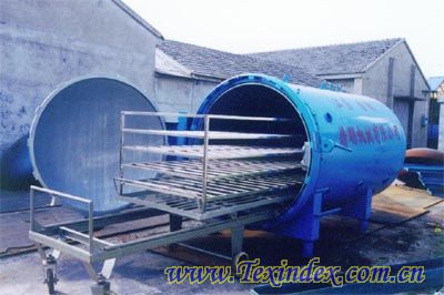 第三步:加热。使低温饱和蒸汽渗透到锥形管纱。每一道生产工序(纺纱、加捻、织布……)都会引起纱和纤维的张力效应,张力的作用会引起纱的缠结。而人造纤维内分子结构的应力松弛,令纤维产生收缩。张力和缠结会给后道工序带来问题。