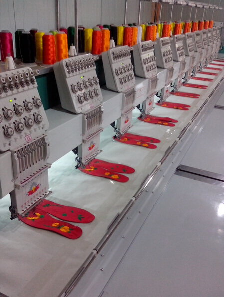 | 型号 | 针数 | 头数 | 头据MM | 绣幅 | 规格 | | | LY-612D | 6 | 12 | 300 | 300*600 | 5200*1800 | | | LY-912D | 9 | 12 | 400 | 400*600 | 6000*1800 | | | LY-620D | 6 | 20 | 200(400) | 200*600 | 5400*1800 | | | 功能项 | 具体参数说明 | | 型号配置 | 6-9针(色) 12-24头 | | 刺绣面积 | X 400mm * Y 750mm | | 设备规格 | | | LCD显示器 | LCD5.7' 彩色液晶显示器 | | 最高速度 | 700针/每分钟(根据机型的不同) | | 自 动 剪 线 | J (有) | | 底 线 检 测 | 具有底线检测功能 自动停车报警 | | 勾线系统 | 采用进口旋梭,进口机针 | | 花样文件传输 | USB 配备专用U盘 大花样快速读取 | | 内存 | 1亿针 10000个花样 | | X&Y 驱 动 系 统 | 加强型直线导轨进口优质轴承,采用意大利进口皮带, 带轮,保证绣框刺绣精度 | | 铝 绣 框 | 特殊结构设计及铝型材,采用科学的桥式结构 | | 机 架 结 构 | 碳钢C40特殊加重机架、加大梁 | | 主电机 | 伺服2.0KW 自动变速 | | 驱动电机 | 步进 110W*2 | | X*Y步进系统 | 采用1000三相细分驱动 绣框精度达到0.1MM | | 整机功率 | 1.8-2.2KW 220V/380V 50 / 60Hz | | 附加功能 | 具有软件限位绣框保护功能,断电保护功能 | | 加油系统 | 无 选购 | | 选购功能 | 加强型针杆箱 | | 选购多功能组合 | 2合1 平绣+亮片绣/绳绣/毛巾绣 平绣+双亮片 4亮片 3合1 平绣+亮片+绳绣/平绣+亮偏+毛巾 4合1 平绣+亮片+绳绣+毛巾绣 | | 随机标配 | 工具包 易损件一套 梭芯2套 梭壳2个 油壶一个 操作说明书 自动绕线机一台 进口机针11#2包 9# 1包 14# 1包 平行调节套装一套 |