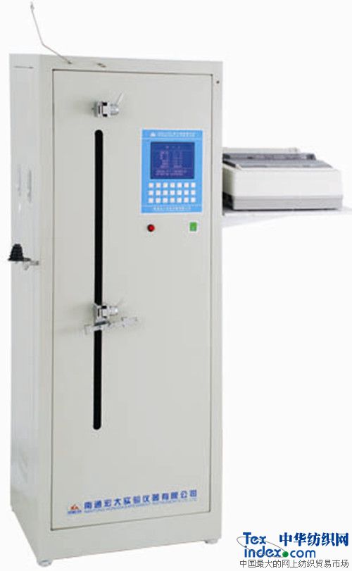用于测定棉、毛、麻、包芯纱的单根纱线及合成纤维长丝、变形丝的断裂强力和断裂伸长率。型式:等速伸长(CRE)。 仪器特点: 1. 采用高精度、高速率力值测量系统,试验数据更精确。 2. 采用微电脑控制、大屏幕液晶屏(台湾精彩公司产品),支持中英文菜单随时切换,人机交互对话操作,多种字符输入,可实时显示拉伸曲线,具有断电数据保存功能,最多可查询300次历史数据,打印机输出中文或英文报表及曲线图形。 3. 采用高精度精密滚珠丝杠和高性能步进电机组成高精度定位,低噪声、平稳的驱动系统。隔距长度、拉伸速度任意数字设定。 4. 根据不同试验材料及测试要求可选配多种夹持器(包括气动夹持器),采用销联接技术,能快速简便地更换不同的测试所需夹持器。 适用标准:GB/T3916;GB/T14344;FZ/T12010;ISO2062;ASTM D2256;BS1932.Pt.2;DIN53842.1;DIN53835.2;NF G07-002;NF G07-302;NF G07-310;KS K0409等。 主要技术指标 l 力值测量范围: (有三种规格) 0~5000cN 分辨率:1.0cN 0~12000cN 分辨率:1.0cN 0~500N 分辨率:1.0N l 测量精度:±0.5% l 隔距长度:50~500mm(数字任意设定) l 最大伸长:750mm l 拉伸速度:50~1000mm/min(数字设定) l 预加张力方式:1、外置加码 2、内置智能设定 l 试验方式:1、定速拉伸 2、定伸长负荷 3、定负荷伸长 4、撕破 5、剥离 l 测试数据输出方式:1、液晶中文菜单显示:各项设置参数及测试值 2、打印输出:测试报表及拉伸曲线图形 l 打印机配置:LQ380K 针式打印机 l 电源电压:AC220V±10% 功率:100W l 外形尺寸:550×510×1380mm(L×W×H) l 重量:95kg