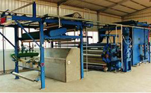 喷雾给湿单元机 喷雾由给湿箱与汽蒸烘筒组成双重给湿系统,保证预缩前的织物具有更匀透、更合适的湿度。可使用饱和蒸汽或不含油的压缩空气作为喷雾给湿箱的气源。可采用进口离心喷水装置代替喷雾给湿装置。 重型橡毯预缩单元机 该单元机是预缩机的心脏、灵魂。织物在橡毯与加热承压辊之间,通过压紧辊对橡毯的挤压,与加热承压辊接触的橡毯经向伸长,随着辊体转动,失去挤压力后的橡毯回缩并带动织物经向收缩,完成织物预缩。该单元承压能力可达20吨以上,从结构上保证了高预缩率的实现。 呢毯整理单元机 织物完成预缩后被送至呢毯整理机进行烘干定形整理,使织物经预缩后不仅得到稳定的尺寸,而且通过毛毯的作用改善了织物的手感。毛毯的张紧采用气动装置,调节方便、压力适中;纠偏采用进口光电探边,气动纠编,动作迅速、纠偏准确。 电气控制单元 采用PLC控制的四单元变频调速系统,实现了预缩特有的比例同步控制。 对重要的工艺参数——预缩率、湿度、温度、张力等均可实现在线检测,用户可以方便地选用。 可采用彩色触摸屏实现人机界面。 关键元器件采用进口件,提高了设备的整体性能和可靠性。 技术参数: ●车别分为左右手; ●公称幅度有1800mm、2200mm、2800mm、3200mm多个系列; ●车速5—80M/Min; ●橡毯厚度67mm; ●大烘筒直径2000mm; ●最高工作压力0.5MPa; ●传动方式为多单元交流变频比例同步传动。 ●本机两个最重要的经济技术指标为:预缩率16%、缩水率1%。