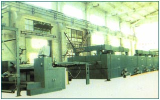 | ASMA501定型机 |  | 1、用途 本机主要供重量为80-360g/m2的化纤及其混纺等平幅织物作拉幅热定形用。 2、主要参数、规格 2.1 公称幅宽(W): ASMA501-180型 ASMA501-220型 ASMA501-240型 ASMA501-280型 ASMA501-280型 1800 2200 2400 2800 3000 2.2 车别: 右手车(或左手车)。 2.3 车速: 10-80m/min。 2.4 热源及耗量: 循环导热油耗量3.344×106 kJ / h 。 2.5 烘房工作温度: 160~220℃,温度自动控制。 2.6 调幅范围: 700--(W-50) mm 2.7 进布方式: 针板或布铗水平运行。 2.8 出布方式: 摆式折叠落布或大卷装落布。 2.9 传动方式: 交流变频调速的交流电机拖动。 2.10 超喂: 正超喂30%,负超喂10%。 2.11 装机功率: 约120kW。 2.12 烘房尺寸:(长×宽×高)(690+2910×N)×(1800+W)×1640。 (N为烘房节数) 2.13 全机尺寸:(长×宽×高)(15710+2910×N)×(2500+W)×3500。 (N为烘房节数) 2.14 机器重量:约40t(幅宽2200,7节烘房)。 3、主要结构特点 3.1 机器采用积木式小循环烘房结构,每节烘房为一独立的温控单元。 3.2 循环风机采用离心式风机,喷风管采用楔形,小圆孔均匀分布。 3.3 喷风管可从烘房侧面抽出,便于清洁维修。 3.4 拉幅轨道采用铸铁结构,拉幅链条采用定时注油润滑结构,轨道工作面衬酚醛石墨润滑板。 3.5 采用光电或红外线探边装置,保证织物上针可靠。 3.6 可根据需要选配轧车和整纬装置。