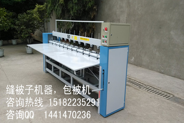 欢迎咨询眉山精细弹花机制造厂专业生产的全自动引被机,针直缝机,棉被褥缝被机,全自动精细弹花机,全自动梳棉机,全自动揉磨机,棉被加工生产线等设备。 全自动引被机(直绗机)简介 该全自动引被机是红外线控制的一种高效率、自动化的直绗设备,该机不留被头,一人操作,简单方便,两分钟可引一床被子,线条笔直好看,针距均匀,大小可调,有七针、九针、十一针等多种机型,长度不限,是取代传统跪爬式一针一线引被的高科技产品。 该全自动引被机设计合理,安全可靠,整体美观大方,占地面积小;本机长2.8米、宽0.7米,高1.3米。价格低廉,回本快,是老百姓都用得起的机器,是弹花匠致富的首选产品。 全自动引被机技术参数: 1、针距 25—50毫米可调 2、针速 50转/分 3、针迹形式 单钱锁式 4、机针型号 25*450工业机针 5、最大缝件宽度 2.3米(可按缝件尺寸定作机器) 6、外形尺寸: 2800×700×1300毫米 7、整机重量: 240公斤 8、配套动力: 0.75千瓦(单相) 全自动引被机可绗缝蚕丝被、丝棉被、太空被、踏花被、七孔被、九孔被、中空被、棉花被、有网棉被、羊毛被、驼毛被、保温被等等被子。 欢迎各界朋友来公司参观、考察、洽谈业务