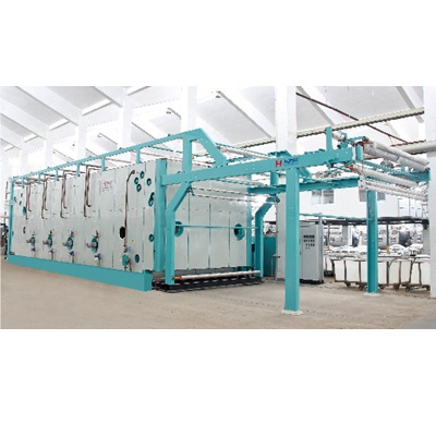本机适用于各种天然纤维、合成纤维、化学纤维及其混纺的机织物、针织物、无纺织物印花后的蒸化固色和涂料印花后的焙烘, 适用于多种工艺及染料,适用织物克重范围:50-450g/m2。 2.主要规格及参数 | 车别:面对进布,视传动侧而定为左手车或右手车 | 机械车速:5m/min-50m/min | | 机械门幅:1800mm-4000mm | 主要适应产品:针织印花布、梭织印花布 | | 进出布方式:前进后出,前进前出,单层单幅,双层双幅 | 供应蒸汽最小压力:0.3mpa | | 容布量:140m、210m、280m、350m、420m | 供应水允许最高温度:60℃ | | 环长设定:1.25m-2.5m,调节比:1:2 | 适应工艺:高低温两用(活性工艺、雕印工艺及分散工艺) | 3.机器结构 1、连布架:主要包括进布机架、紧布器、导布辊等。 2、主蒸化箱体:主要包括进布汽封箱、汽蒸箱头段和汽蒸箱尾受以及若干个中段(每个中段容布量70米:两个循环风机、两个热交换器、两套蒸汽加湿喷嘴等)、带蒸汽加热的顶部辅助加热管、带照明的观察窗、成环进布辊、成环机构、链条轨道、挂布辊轨道、挂布辊、主传动、带容布量探测 器的出布调速装置、出布汽封箱、离心排风机等。 3、自动给湿装置:由高压水泵、高压储水包、电磁气动角座阀、湿度探头、混合喷头等组成,可根据工艺要求对蒸箱内蒸汽的湿度进行控制。 4、饱和蒸汽发生器:特殊设计的饱和蒸汽发生器无需外接蒸汽来产生饱和蒸汽,这就使得整个蒸化机的外接蒸汽消耗极低。 5、热油循环系统:主要包括热交换器及其连接管件等。 6、一套温度调节系统:用于载热油循环加热的蒸化机中段,主要包括温度探测器、温度控制仪、电动三通调节阀等。 7、一套管件:用于主蒸化箱体,主要包括分汽包、连接管件、截止阀、疏水阀等。 8、电源控制柜:主要包括可编程控制器、人机界面操作屏、 交流变频器、主开关及按钮指示灯等。 9、交流电机传动:主要包括交流电机、同步装置、控制装置、控制柜等。 10、全机连接线路及桥架。 11、出布架:主要包括出布机架、牵引辊、导布辊、摆布装置、机械传动等。 12、按供方提供流程图、地脚图为准。 4.机器的安装与调试 1、箱体底部与墙板结合的水平度:横向不大于1mm,纵向不大于3mm。 2、墙板垂直度偏差不大于3mm。 3、墙板对角线偏差不大于5mm。. 4、挂布辊在轨道上水平度不大于±3mm。 5、链条轨道直线度不大于±3mm。 6、同侧挂布辑链条轨道在同一铅垂面内误差不大于±3mm。 7、挂布辊链条链轮轴的水平度不大于±3mm。 8、各传动轴、导布辊相互间的平行度不大于±2mm。 9、容布量调节装置转动灵活、检测探头灵敏,循环风机运行平衡。 10、挂布辊从前往后移动时,挂布辊转动灵活。 A:机械部分 1、蒸箱箱体采用4mm09CuPNiCr-A耐侯板或不锈钢板(根据 客户要求而定)制作并在墙板上进行防腐蚀处理,使其使用寿命延长。 2、蒸化机主要部件链条采用40Cr合金钢热处理制作。加强 它的刚性及耐用性,在使用过程中变形小、伸长少,并对链 条进行镀锌防腐蚀处理,延长其使用寿命。 3、独特而可靠的机械手成环装置,与同类蒸化机锚链成环的掉链现象、成环刀成环的撞挂布杆现象及车速过慢(最高才40m/min)现象相比,该机运转不掉链、不撞挂布杆、维修不需降温,可靠方便,车速可达50m/nin,产能相比提高了20%。 4、蒸箱内蒸汽的流通部分如蒸汽供给管道、风盒、风机叶轮、导流板等采用09CuPNiCr-A耐侯板或不锈钢板(根据客户要求而定)制作,増强他的耐腐蚀性,延长其使用寿命及使用效果。 5、蒸箱内挂布辊直径为Φ50mm的辊体,轻巧、坚固,在使用中顺着轨道自转,避免出现横档印等瑕疵。 6、独特的加湿装置,可以在设备不停机的状态下进行拆卸,清理堵塞喷嘴的污物,并轻松快捷的还原,即不影响生产又能达到工艺保证产品质量。 B:工艺给湿及温控部分 1、在喂布成环处,设有独特的吹环给湿,吹汽装置直接増加了布面湿度,使发色更充分又使成环稳定,并能达到消除静电功能。 2、在成环处约1米长度空间处的正下方,单独设计饱和蒸汽大供应食量的喷汽装置,使织物在工艺反应时得到大量的、充足的饱和蒸汽使织物发色更充分、更鲜艳。 3、 轻松拆卸的加湿装置,在变频调速下给予恒定的水压,雾状的从四个喷嘴喷出,并在辅助蒸汽的作用下,快速通过风机循环,均匀加入蒸箱内,稳定的控制着蒸箱内的温度与湿度。 4、该机共设有若干个测温点(根据容布量而定:每个中段的循环风道口上方设左右各1个共2个测点),直接且精确的反应出蒸箱内的温度,并科学确认蒸箱内的工艺温度。 C:品牌的电气化部分 1、国标电柜,四门可拆装,外形美观而坚固,人性化的操作按钮设计,直观、方便,科学的走线与安全布局,使操作更为安全可靠,经久耐用。 2、日本原装的欧姆龙变频器,故障率低,软启动并节能节电; 台达的交流伺服系统定位精确; 独特的故障自行恢复功能,更是减少维修; 所有的低压电器元件均为施耐德品牌,经久耐用; 威纶MT500型超大触摸屏, 生动清晰的反映出机械的正常运转情况。一切都保障着蒸化机的正常运行。 D:节能减排部分 1、机器设计为下进布、下出布,使多余的蒸汽及废汽只能从上而下溢出箱体,充分的利用了饱和蒸汽并节约用汽,比原上进上出节约用气16.7%(原机型用量约1吨/小时- 1.2吨/小时,现机型用量约0.8吨/小时-1吨/小时) 2、独有的饱和蒸汽发生器,是以导热油盘向管