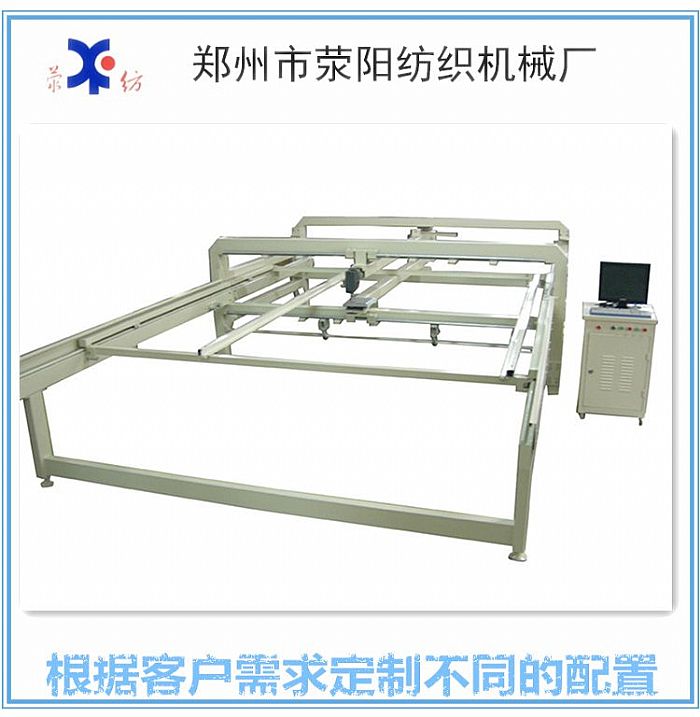 全电脑绗缝的功能及特点 1.薄度调整功能:来调整不同的薄厚,可以按照相关说明来调节绗缝的深浅。 2.花型存储功能:电脑绗缝机磁盘可以长期存储花型,用户可以根据需要可选择使用添加花型。操作简单、方便、快捷。 3. 设置线步功能:可靠性强,线步均匀,花样不容易变形。 4. 旋梭功能:可以有效的防止断线。 5.断线检测功能:当断线时,系统自动停车。 6. 占地使用率:电脑绗缝机占地小,但是绗缝尺寸大。 7.信息显示功:可以在显示器上看到主轴转速、停车因素、产量统计、剩余内存等显示。 8.安全装置:电脑、电机、机器等发生异常现象会自动停机,画面出现故障内容。 9.加固缝功能:开启加固绗缝功能后,绗缝机在特定点处自动绗来回针。 10. 断电记忆功能:作业过程中停电或断电源时,或当绗缝机(针或线)出现问题,需要停机的时候,电脑绗缝机可以自动快速的,沿着花型运动路线的路线进行快进或快退。并且在需要继续绗缝的时候,可以自动或手动回到停机时的绗缝点,进行继续绗缝。