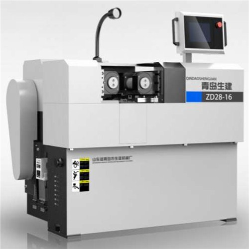 滚丝机是一种多功能冷滚压成形机床,利用材料的塑性变形对工件进行螺纹、斜纹、蜗杆滚压,也可以对工件进行直纹、校直、缩颈、滚光等。青岛生建机械滚丝机主要型号有ZA28-12.5B、ZD28-16、ZA28-20、ZA28-25、ZA28-40、ZA28-63、ZA28-125