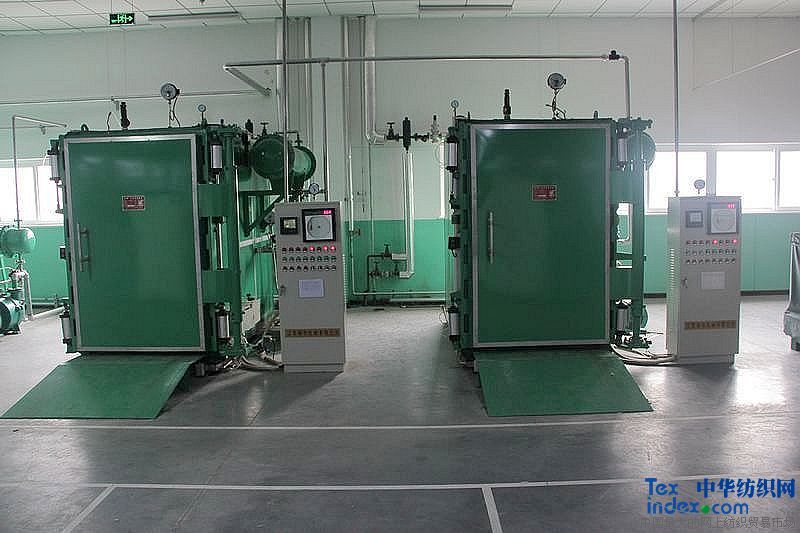 我公司吸收国外同类产品的精华而研制的新型自动真空调温给湿蒸纱机,以下简称“蒸纱机”具有全自动化控制,生产效率高等优点。成为目前理想的给湿定型设备。它适用于以棉、麻、毛、真丝、化纤等为原料的纺织单位,其用途是将具备织造条件的丝线在合并加捻后进行给湿定型,即在多次真空和一定温度范围下增加湿度,降低纱线伸缩率,改善产品手感、光泽度,提高纱线张力、强度,同时消除静电及各部分的不平衡应力。该蒸纱机的使用特点是:适用范围广泛,定型后产品的物理性能如:强力、伸长度等不受影响,同时使针织效率提高10%;整经、织造效率提高15%;又使染色布均匀,还可以降低失重率.