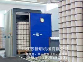 江苏精明机械是一家专注于生产纺织汽蒸机设备的公司,公司主打的产品有:蒸纱机,纱线定型机,蒸箱,蒸纱锅,袜子定型机,蒸纱机,窗帘定型机等各种纺织定型设备。 精明KSZX系列不锈钢电蒸纱设备,适用于以天然纤维、化学纤维为原料的纺织行业和单位,其用途是将具备织造条件的连续丝线在合并,加捻后进行多次真空热定型,使定型后的丝线不扭缩、不弯曲,光滑平整。也是缫丝行业触蒸处理的理想设备,既可湿热定型,又可干热定型。箱内配备真丝小车一套,箱内上方有不锈钢防污皮,配水环式真空泵及疏水装置,同时配有一台蒸箱自动控制仪。 精明蒸箱概述(性能及用途): 精明机械生产的不锈钢电蒸纱设备适用于以真丝,棉纱,羊绒等天然纤维为原料的纺织行业和单位,其主要用途是将具备织造条件的丝线在合并.加捻后进行给湿定型,即在多次真空和一定温度范围下增加湿度.降低纱线缩率,改善成品手感,光泽度,提高纱线张力.强度,同时消除静电及各部分的不平衡应力。 使用特点:范围广泛,既能湿热定型(将饱和蒸汽直接通入筒体内)又能干热定型(将饱和蒸汽直接通入夹套内,由筒体内壁散热)。大门开关轻便灵活,物件装卸迅速.方便。大门同筒体法兰的密封良好。定型后产品的物理机械性能,如:强力.伸长度等都不受影响,同时使针织效率提高10%;整经/织造效率提高15%;又使染色布面均匀,还可以降低失重率。 精明机械生产的纱线真空给湿蒸纱机可对纱线进行热定型.给湿处理,均匀渗透,预热式蒸纱增加棉纱重量多达1.7%-…3%,增加毛纱重量多达2.4%--4%。J40s管纱,蒸纱前后毛羽变化情况见表 蒸纱前 蒸纱后 根/10m(2mm) 根/10m(3mm) 根/10m(2mm) 根/10m(3mm) 158.5 39 134.8 31.5 回潮率:7.22% 回潮率:11.02% 精明蒸箱“蒸箱”的优势: 1.工艺时间短,节省能量,与传统蒸纱机相比,节能达80%。 2.质量稳定,温度、湿度的精确控制使每生产批量都能得到同等处理。 3.投资回收期短,比进口设备投资成本低,比国产设备节能明显。 4.无冲击处理,无冷凝斑点。 5.既能调节温度,又能调节湿度。 6.适合处理小车、运纱箱装载的纱线 7.可处理各种天然及合成纤维纱、混纺纱。 纱线的热定型 1.典型的蒸纱工艺步骤 真空——预热——加湿——保温.恒温——真空降温——结束 2.独一无二的预热系统 在蒸纱过程中,纱线上的水珠斑点是常见的毛病,水珠斑点会引起染色以及后道工序的其他问题,因此,蒸纱预热工艺是绝对必要的,尤其是毛纱。 3.纱线的热定形 每一道生产工序(纺纱、加捻、织布……)都会引起纱和纤维的张力效应,张力的作用会引起纱的缠结。张力和缠结会给后道工序带来问题,而人造纤维内分子结构的应力松弛令纤维产生收缩,因此,精明机械生产的蒸纱机给纱线生产带来了最佳选择。 研究表明,以下类型的纱线必须使用蒸纱来进行松弛和定形:棉纱、毛纱、混纺纱、涤纶纱、包芯纱(氨纶)、缝纫线、人造纤维纱、腈纶丝束、网眼针织物(卷曲纤维)。 每种原料都需要特定的加工工艺来达到理想效果,温度范围由50℃到最高140℃(见表1)。饱和蒸汽是最理想的热定形介质,它很容易渗透到筒纱内部,并在凝结时释放能量。当纱线加热到指定的温度时,其温度偏差维持在很小的范围内。 纱线的加湿 在纱线的生产过程中,纤维的水分不断挥发,由原料到筒子,其湿度累计减少超过4%,因此,纱线的加湿处理已经成为当代纺织工艺的重要组成部分,它能补偿纱线重量的损失和改进纱线的质量。不同的纺纱厂有其不同的纱线湿度指数,提高机器的速度会导致大的重量(水分)的损失。机器内部的高温和摩擦会蒸发纱线内的水分,以及降低纱线的质量,不利于后道的加工工序,而加湿处理恰好能解决此类问题。表2为棉纱不同生产工序的湿度。 纱线的加湿处理(蒸纱)位于络筒之后,纱线入库之前,若纱线的仓储时间较长,则在交货以前进行为好。此外,针织和梭织也可得益于纱线使用前的加湿处理(蒸纱)。运输当中纱线的适当包装如筒线袋装或纱盘张紧密封缠绕包装都能保持纱线的湿度。 对织造工序的研究表明,纱线经加湿处理后优于未经加湿处理(干燥纱线)。当用经加湿处理的纱线来做纬纱织布时,布机的停台数会大大降低。此外,纱线的强度和断裂伸长率得到提高,毛羽减少,织造效率因而提高2%,在针织方面亦看到飞花毛尘明显减少。 在贸易中,买家决不接受额外加价,纱线重量的增加也就是利润的增加。一般,纱线加湿处理设备投资回报期少于1年,而棉纱的加湿设备投资回报期甚至少于半年。另外,出口贸易对质量的要求,也需要不断提高纱线的品质。因此,纱线的加湿处理现已成为纺织工艺的重要部分。 处理效果 1.松弛、定形、加湿。 2.增加纱线强度,减少断裂(棉纱断裂强度将增加10%,毛纱断裂伸长增加30%)。 3.棉纱毛羽落花微尘减小30-45%。 4.纱线湿度均匀,控制回潮率精度高。 5.消除静电,改善纱线退绕效果。 6.柔软的手感。 7.提高上色效果。 8.提高生产效率,改善产品的综合质量。 对后道工序的好处 1.针织 (1)纱线的退绕张力、效率提高达20%;(2)纱线柔软,减少了针的磨损;(3)从开始到卷装成形,始终保持均衡且最佳的摩擦值;(4)针织过程中,线圈成形均匀;(5)成品的大小尺寸稳定;(6)无需额外的增湿系统;(7)消除静电。 2.机织 (1)断纱减少达15%;(2)减少棉绒和纤维飞花30-45%,提高质量; (3)改善纱线强度,提高织造效