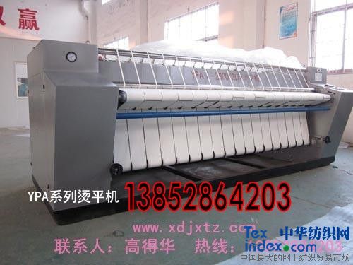YPA烫平机系列:泰州用心惠子洗涤设备有限公司是集生产洗涤设备、原材料和专业技术服务为一体的专业化公司。 YP2800 3000型系列自动熨平机,是我厂研制的新型洗涤设备配套产品之一,该机适用于宾馆、饭店、旅社、洗涤部门、部队、工矿等企事业单位熨烫床单、被套、台布、浴巾和毛巾等棉毛织品的专门机械。 本熨平机是国内新一代设计,它具有下列主要特点: 1、本机采用滚筒式结构,蒸汽直通滚筒,加热滚筒熨烫表面,具有加热效率高、熨烫效果好等优点。 2、本机采用无极调速电机拖动熨平速度可调,工作效率高。 3、本机采用钢件结构,外筒采用进口不锈钢。体积小、坚实牢固、整机平稳。 4、本机采用三角皮带和链轮传动,具有传动准确可靠、振动小、噪音低的优点。 5、本机输送绽带按进口产品标准生产,产品造型参考国际最新样机设计,色泽华丽、美观大方。 工业烫平机——全国送货上门,方便快捷,省力,省心,更省钱。 工业烫平机售后保证 1、在合同规定的期限和维护范围内,对客户的设备提供免费保修与维护,保修期外,终身服务。 2、定期回访用户,帮助解决用户在使用设备时或洗衣时出现的问题和要求。 3、24小时接受用户的来电咨询,帮助解决用户在使用设备或洗衣时出现的问题和要求。 “不断向用户提供高科技,高质量的产品”是用心惠子人永恒的追求。 单滚烫平机系卧式两端箱体型结构,滚筒为优质不锈钢板精制而成,传热快,熨烫平整光滑,不污染、损伤布草。 2 烫平机传动、进汽和疏水系统分别置于两边箱体内,外型美观新颖,结构紧凑,体积小。 3 烫平机安全可靠,进料部分装有限位机构,输送时人手触接护指板立即停车,保障操作人员的安全。 4 烫平机在输送系统各层次间设置了对应的速差,使织物更易张紧压平。 5 烫平机传动系统由电机经减速机,再经链条传动带动滚筒,超负荷能力强,有一定的缓冲和减振性能,各链条均有张紧装置,方便调节松紧。 6 采用宽绽带传送,并用隔圈相隔开,避免了绽带在传送中难以解决的游动现象,采用微型搭扣联结,装拆、更换方便。 7 烫平机蒸汽进口装有安全阀,出厂前已调校好,正常工作时,一般不需调整,用户每年必须送劳动部门校验一次。 8 烫平机各输送层次间用耐温微薄导向带隔离,保证织物不产生粘结现象,故上浆织物也能达到满意的熨烫效果。