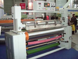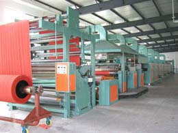 本联合机主要用于生产PVC及PU革等产品。可用于直接涂层法,浮刀涂层法,转移涂层法。选用不同的工艺能加工出防水透湿、防羽绒、正面推水反面吸水、双面不同色泽、仿麂皮、 人造革、保暖防风、 超光泽等性能的织物以及防火、防融、耐寒等蓬帐布和工业用布等。