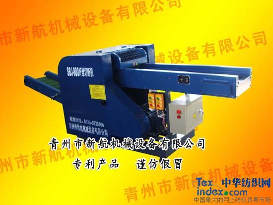 我公司自主开发具有独立知识产权的主要产品SBJ系列旋转扭刀式纤维切断机(又名碎布机、短切机、剁线机、碎步块机、破布机等)。本机废除传统往复式直刀版,应用国际领先斜旋扭式滚动刀与定刀切合点移动剪切设计,实现连续高速剪切。产品设计先进,外形美观,经济实用,控制灵敏,剪切利落彻底。并已获得国家专利(外观专利号:200830163085.0 实用新型专利号:200820025018.7)