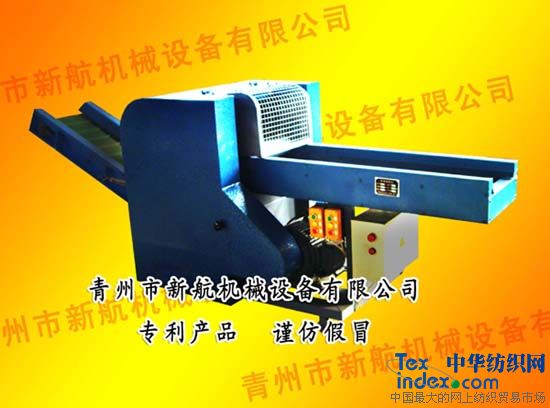 青州市新航机械设备有限公司自主开发具有独立知识产权的主要产品SBJ系列旋转扭刀式纤维切断机(又名碎布机、短切机、剁线机、碎布块机、破布机等)。本机废除传统往复式直刀板,应用国际领先斜旋扭式滚动刀与定刀切合点移动剪切设计,实现连续高速剪切。产品设计先进,外形美观,经济实用,控制灵敏,剪切利落彻底。并已获得国家专利(外观专利号:200830163085.0  实用新型专利号:200820025018.7)