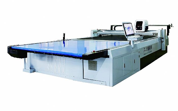 TMCC电脑自动裁床转为针对西服、制服、汽车内饰、牛仔服、裤装、箱包、女装、时装、内衣等裁剪而研制。该款设备真空吸附后最大裁剪厚度为70mm,常规裁剪有效长度为2500mm。适合裁片较大的产品裁剪,减少送料时间,能够有效提高裁剪效率。具有电脑排版自动化、材料节约、裁剪精度高、产品效率高的特点,是裁剪史上的一次变革。本产品对提升公司实力、提高产品品质、提高工作效率、节约成本具有明显的作用。该款设备采用直刀上下往复的裁切方式,不仅在机械上完全自动控制,并且在裁床控制软件中根据各种面料的裁剪情况,调整走刀顺序,走刀方向,走刀速度等参数进行设置,以保证品质裁剪。 | 产品型号 | TMCC-1725/M | TMCC-2025/M | TMCC-2225/M | | 裁剪面积(mm) | 1700×2500 | 2000×2500 | 2200×2500 | | 裁剪速度 | 0-50000mm/min | | 面料裁剪厚度(吸附后) | 最大70mm,根据面料特性不同,裁剪高度不同 | | 切割精度 | 刀具重复上下裁剪 | | 气压、流量 | 0.55Mpa 160L/min | | 裁剪软件 | 自主版权的电脑自动裁剪软件 | | 电源电压 | 电源AC380V/50HZ | | 设备重量(Kg) | 2100 | 2200 | 2400 | | 机器尺寸 | 5760×2610×1500 | 5760×2610×1500 | 5760×2610×1500 | 产品特点 - 电脑设计、自动排版、节约原材料。
