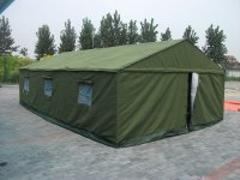 1.用途:野外考察、露营、勘探、施工、救灾、防汛时的野外临时居住使用2.性能、结构、特点:(1)帐篷规格:5X8 5X6 5X4 3X4 2X3(其它规格均可订制),墙高1.6米,顶高2.85米,(其它规格均可订制)。(2)帐篷结构合理,使用安全可靠,可同时承受8级风和8厘米厚积雪荷载。(3)帐篷采用钢架结构,构造简单,展收方便,20分钟左右/4人即可架设或撤收完毕(产品附安装说明书,一看即会)。(4)帐篷(布包+钢架共二件),包装体积0.8立方米,所有零部件全部集装布包内,形态规整,便于随车远程携运或人力短途运输。(5)帐篷采用军绿色三防布,中间使用毛毡,内衬白布,做工以军品帐篷为标准。窗户设有纱网,具有防蚊虫、通风等功能。3、产品特点及使用注意点:(1)、具有防水、防霉功能,并具有材轻、抗拉强度高、耐酸碱、抗高温、洗刷折叠方便等特点。(2)、本产品在使用过程中应避免与锋利的金属快口撞击。(3)、产品使用中如有损坏,可用涂胶液修补。(4)、产品质量保证,并能为用户做好售后服务。加强款基本信息产品材料*棉帐篷,帆布材质使用季节*春、夏、秋、冬都可用(棉帐篷保温隔热,并且比单帐篷耐用)产品安装*帐篷附带安装图纸,安装选平整硬质地面,安装好后一定要把地钎和拉绳固定好,定期检查拉绳和地钎。www.pffyb.com设计样式*屋脊型结构,仿照军工帐篷结构帐篷参数*帐篷顶采用850g三防布来防水,夹层900g防寒毡,内衬220D涤纶白布;* 帐篷围布采用85*92高密度帆布,夹层900g防寒毡,内衬220D涤纶白布;* 骨架采用国标1.2mm壁厚,25mm 30mm方管套接,军工帐篷结构;