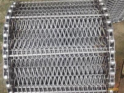 人字形网带由左右交替的网条通过四根直串条联结而成,精密的编织技术使网带既具有密度高网孔细运行灵活的特点,它对材料和编织技术要求极高。此网带适合于细小承载物的输送线。