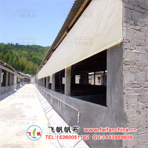 | 飞帆帆布厂为各大猪场养殖户量身定做的养殖卷帘帆布加工制作轻便、耐用,河南猪场卷帘采用PVC涂塑帆布加工,双面过PVC胶具有防水,防晒,防寒保暖,耐酸,耐碱,耐磨,抗老化等功能。主要用于养殖猪、牛、羊场墙上防风帘,起到冷天下雨保暖防风作用,热天方便卷起来通风认空气流动,对肉猪的健康生长起到了很大的作用。给养殖户带来了更高的效益。 一、飞帆帆布厂养殖场卷帘帆布产品介绍: 1.厚度:0.4mm 2.克重:500克/平方米 3.颜色:绿色 黄色 白色 蓝色 4.常用规格:1.3米、1.5米、1.7米、1.83米、2米、2.1米、2.5米、3米(其它幅宽加工定做) 5.产品功能:防水,耐寒,防风,防晒,耐老化,耐酸碱,保暖 6.产品特点:产品无线头,表面光滑,不易掉胶,透光性好,使用寿命长。 二:猪场卷帘布安装所需配件 安装养殖猪场卷帘帆布前需购买产品:首选选购透光性好,保暖效果佳的帆布卷帘以及卷帘机和水管夹,一张卷帘配一套卷帘机(卷帘机分大小,长度20米~50米,高度2.5米~3米的建议用厚型卷帘机)。水管夹建议:1米~2米间隔安装一个(只夹下面六分管)。 三:猪场卷帘帆布加工: 猪场卷帘布从半成品到产品经过:织布~涂塑~烘干~开料~热合~裁剪~车边~打孔~打包等工序精制而成。本产品最大特点具有防水~防晒~防霉~防尘~防潮~防老化~耐磨~耐撕拉使用寿命长等特点。产品应用广泛,可用做工业盖货用挡雨布,露天堆货场盖货盖布,货车运输用雨篷,服装印花厂用印花台皮,养殖场用猪场卷帘布,矿场井下导软接帆布风管,港口集装箱打包用防潮帆布,厂房酒店停车场搭棚用遮雨布,门店活动遮阳棚。 四:猪场卷帘安装步骤: 1:固定猪场卷帘布:(1)上边:将欲安装的猪场卷帘布(帆布或塑料布)按预定尺寸做好后,上边卷在一支4分管上(4分管的长度要保证两端长出帆布10公分),并将其按要求固定在墙壁上。 (2)下边:帆布的下端卷在一6分管上,用卡箍固定好。6分管的长度要保证两端长出帆布30公分,以便于安装卷动轮。 2:安装卷动轮:将卷动轮套于6分管上,使其离开帆布3-4公分;按照卷动轮上两端的孔的位置,在6分管上打2个孔,用螺丝将卷动轮固定在6分管上。卷动轮安装方向视其旋转方向而定。安装卷帘器:选择合适高度将所附支架安装在墙壁上,然后将卷帘器固定在支架上,要确保牢固可靠,保证使用安全。 3:固定滑轮:将滑轮安装在4分管的上面、卷动轮的正上方,确保牢固可靠。 4:钢丝绳的缠绕方法:先将钢丝绳的一端固定在卷帘器转轮上,在转轮上不要缠绕多余的钢丝绳;将其拉紧并从上方的滑轮绕过,下来后从卷动轮靠近帆布的一侧的第3、4环处开始绕起。其缠绕方向应保证帆布从墙的外面向上卷起。当绕到卷动轮中心时,从中心螺丝处绕半圈反向向卷动轮另一端缠绕。最后将钢丝绳拉紧并固定于地面上。(注意:靠近帆布一端的圈数要少于另一端一圈。) 飞帆帆布厂生产的防水帆布产品应用广泛,还可用做工业盖货用挡雨布,露天堆货场盖货盖布,货车运输用雨篷,服装印花厂用印花台皮,养殖场用猪场卷帘布,矿场井下导软接帆布风管,港口集装箱打包用防潮帆布,厂房酒店停车场搭棚用遮雨布,门店活动遮阳棚。