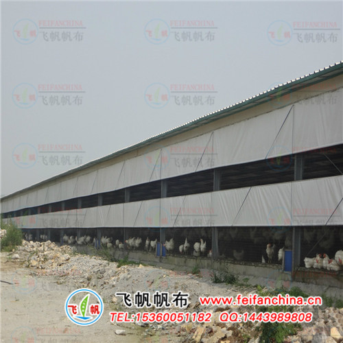 | 养殖场的门窗可搭帘遮盖或整个门窗用防水帆布覆盖,可定制遮阳防雨防风帆布以保暖御寒,飞帆帆布厂猪场卷帘专用防水帆布加工防潮湿、防漏雨,要配备专业的河北养殖场卷帘。对于规模不大,养殖数量不多的猪牛羊场养殖户来说他们觉得不重要,因为他们觉得无必要为低成本大投入去做。其实,养殖猪场卷帘的造价不高,养殖场卷帘防风帆布/雨布且使用寿命长,但这个投资可以说是一个强心针。以猪场为例,当天气恶劣,大风大雨,没有装猪场卷帘的猪棚,雨水受风力不断的洒进猪场内,猪只乱窜乱叫,猪只也像人一样,淋水后也容易感冒发病。后果自然不堪设想,假如装了,抗风挡雨水,还可以还猪场一片安宁。猪场卷帘可以在冷冬的时候,对养殖场内的坏境起到调温作用,对猪只的抵抗能力,繁殖能力都有明显提高,而且选购就要选择大品牌的,例如飞帆帆布。飞帆帆布是帆布行业的知名品牌,其生产的PVC涂塑布材质的猪场卷帘,养殖场卷帘防水帆布卷帘受欢迎程度较高,该材质的产品具有抗拉强度高、耐热性好;重量轻; 用高频热合,不漏水,不开裂; 良好的低温柔软性;优异的抗透水性能;明显的防霉和阻燃性能;飞帆帆布厂防水帆布加工而成的的猪场卷帘具备抗腐蚀性好,耐酸、耐碱、耐盐等腐蚀;而且飞帆帆布出产的产品吸水性极小,雨后快干,不增重,使用方便等特点。