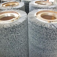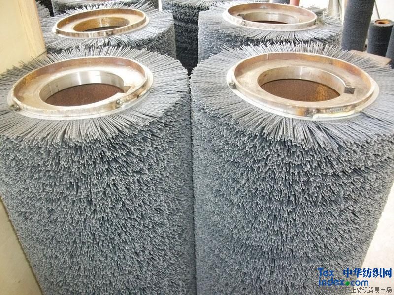 简介 磨毛刷辊简称磨毛辊(俗称碳素磨毛辊,碳纤维磨毛辊等,以下简称磨毛辊),配置在磨毛机中,对织物 进行柔软处理,处理好的织物表面绒毛短而匀,手感细腻柔和,织物强度下降轻微,不易产生沙皮磨毛常见的直条纹。 磨毛辊也可用于金属,非金属表面抛光处理,袜子拉毛处理等行业,应用范围相当广泛。 如今磨毛辊制作方式大概有以下几种: 直接植毛 这是最老的一种方式,就是将磨料丝直接种植在磨辊上,虽然强度可以达到很高,但是植毛成本高,而且无法进行局部更换,是初期无奈的选择。 缠绕式 是国外引进的一种植毛方式,将磨料丝做成可以缠绕的金属条上,然后缠绕在磨毛辊上。可以根据磨毛辊长短定制,但是由于磨料丝是卡在金属条上,所以会导致抽丝(磨料丝被抽出来)的现象,强度不高,而且缠绕后只有两端固定,所以中间很难做的紧,如果一端松掉的话,就会产生事故。 尼龙套式 虽然可以方便的制作,但是所出现的毛病也是最多的一种,尼龙的热胀冷缩会导致尼龙变长,是辊体两端的尼龙长出磨毛辊而顶住机器;使用骑马钉种植刷毛,强度不高,最容易脱毛;尼龙的热胀冷缩也会导致尼龙套胀裂,使整支磨毛辊报废;尼龙的强度不高,无法提高种植密度等等……。虽然国外很多厂家制作,但是暴露出来的问题是最多