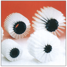 各行业的工业毛刷应用 1、纺织业:产品有定型机毛刷轮、磨毛机毛刷、刷毛机毛刷、精梳机毛刷、棕刷、细纱机毛刷、磨皮机毛刷、抛光布轮。烧毛机专用刷辊,采用猪鬃或尼龙等刷丝材料,辊轴使用45#圆钢+注塑,纺织出来的坯布上有很多多余的毛茸,烧毛辊的用途就是将这些多余的毛茸刷出来,在刷辊下方有明火将这些毛茸烧掉;分幅机开幅辊,分幅辊采用45#圆钢的辊轴、尼龙等材料的刷毛制成,由中间往两边呈人字斜方式植毛,刷辊送布入卷,人字斜的作用就是将布往两边刷使其顺直;针板压边刷轮,中间为注塑体,刷毛大多为猪鬃,用途就是将布边通过刷毛的压力压到机器的针板上去。 2、陶瓷业:釉线刷,中间为结实的檀木芯,植白色或黑色的塑料刷丝,用来瓷砖及其它陶瓷制品的表面上釉作业。 3、制革制鞋业:皮革和鞋面的抛光、打蜡、上油,一般用小型的布轮、马毛、剑麻等刷轮。 4、玻璃业:产品有清洗机毛刷辊、磨边机毛刷 、PP、PU、PVC、PVA吸水海绵滚轮。玻璃清洗机刷辊,辊轴为45#圆钢,刷毛为尼龙材料,如需要加酸液清洗的玻璃清洗线,必须使用全不锈钢的刷辊用来防止腐蚀,一般都用条刷机制成条刷再螺旋形烧焊在辊轴上;吸水辊,采用高密度亲水分子的海绵制成,吸水性能好,干燥快,用来对玻璃表面的水滴进行全面快速吸干。 5、造纸、印刷、卷烟行业:纯尼龙制做的刷辊用来将烟叶扫平铺成薄薄一层再流到生产线进行烘干。 6、木业、家具业:产品有抛光毛刷、砂光机毛刷、密封毛条刷、涂色机毛刷、拉丝机毛刷。采用抗静电的尼龙刷丝制做,对木地板、家具等的表面进行除尘,刷丝不可带静电,以便吸尘设备能将刷出来的灰尘有效抽走。