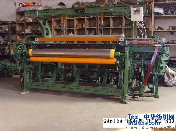 | GA615A2-1X4多梭箱织机 作用及使用范围: 本机主要适用于将单色或多色经纱或捻合经纱,与四种不同颜色的纬纱或纬线按规范的配色循环交织面彩格哗呢、小花纹格被单、女色格布及男女线呢等织物。 技术特征: 1、型式:下打式、自动仃车、人工补纬. 2、手向:分左手车和右手车两种. 3、公称筘幅:分56" 63" 75". 4、最大容经穿幅:135cm(56") 147cm(63")177cm(75"). 5、曲柄轴转数:125-140转/分 6、钢筘与走梭箱夹角:86°30′. 7、传动方式:单独电动机用三角皮带经锥型摩擦离合器传动. 8、电动机型号:Fo-53-6N型. 0.8Kw. 960r/min. 9、梭箱数:1×4单侧多梭箱. 10、梭箱运动:缺齿轮式升降梭箱运动. 11、梭箱变换:钢板控制、任意偶数变换梭箱. 12、钢板节约:利用钢板一侧有孔或无孔控制板倒顺转,另一侧有孔或无孔控制16、32或64梭的钢板仃转. 13、开口结构:平纹双踏盘,也可配多臂提综装置. 14、打纬形式:游筘式打纬,多梭箱装有辅助牵手. 15、送经机构:积极半积极自动送经,补偿涨力送经. 16、卷取形式:七齿间歇卷取,卷布轴卷取最大直径300mm. 17、纬仃:点啄式探纬或边侧纬纱叉探纬及探针无纬仃车. 18、机器重量:1200kg(56") 1300kg(63") 1400kg(75"). 19、机器外形尺寸: 多臂宽 277.1cm(56")307.6cm(63")343.3cm(75") 平纹宽 257.1cm(56") 297.6cm(63")333.3cm(75") 深:160.2cm 高:225cm(多臂) 155.4cm(平纹). 20、主要器材规格: *梭子:长370mm×宽44.5mm×高33.5mm角度86°30′左右手 *纬管:长195mm×管项外经直径12.7mm普通纬管、有探纬槽. *纲扣:总长1394mm(56")1568mm(63")1873mm(75"). *综丝:长305mm.330mm. *仃经片:长120mm×宽11mm×厚0.2mm.