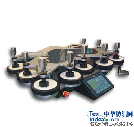 适用范围】: 用于纺织品、膜材料耐磨损、磨耗、及外观变化(起球)的性能测试。 【相关标准】: GB/T21196 GB/T4802.2 GB/T13775 FZ/T20020 ISO12945-2 ISO12947 ASTM D4966 ASTM D4970 ASTM D3886 JIS L1096 IWS Tm196/ TM112 M & S 【仪器特性】: 1、五种测试模式(24×24、24×60、60×60李沙如曲线,60、24两种直线模式); 2、两种计数方式,正计数和倒计数方式; 3、免翻式导板设计,装样无需搬动; 4、PLC模块化控制,七英寸彩色触摸屏、中英文双选菜单操作; 5、伺复系统电机驱动,运行平稳无噪音。 6、全铝合金盖板,不锈钢磨头、不锈钢重锤等组件, 【技术参数】: 1、工位数:9位 2、计数范围: 0~999999次 3、最大动程:横向 60.5±0.5mm 纵向24±0.5mm 4、夹持器与磨台相对运动速度:50±2r/min(20-70r/min可调) 5、装样压锤质量:2385±10g 6、外形尺寸:950×650×410mm 7、电 源:AC220V 50Hz 500W 8、重 量:150kg